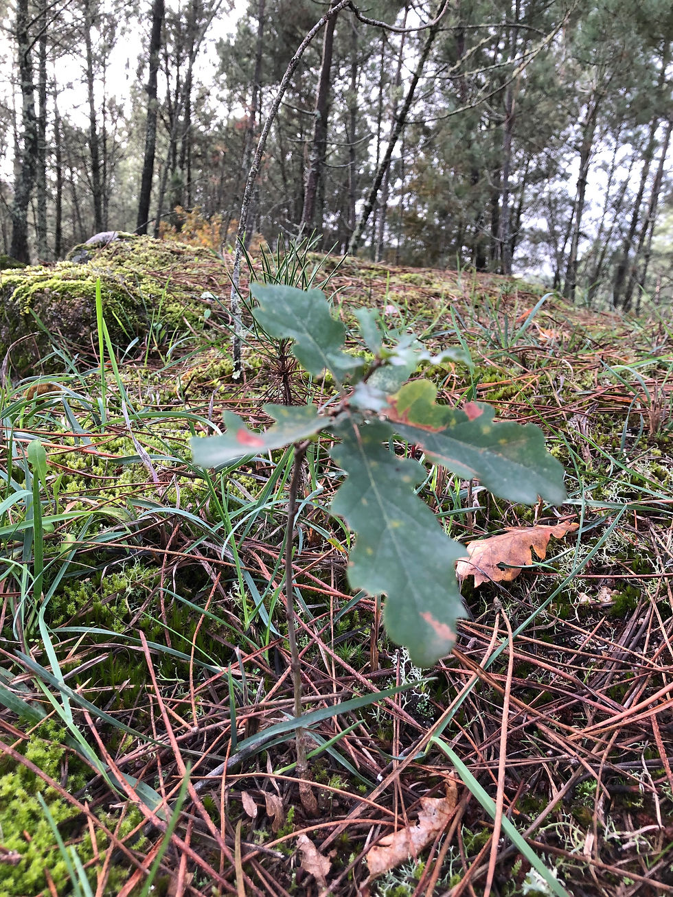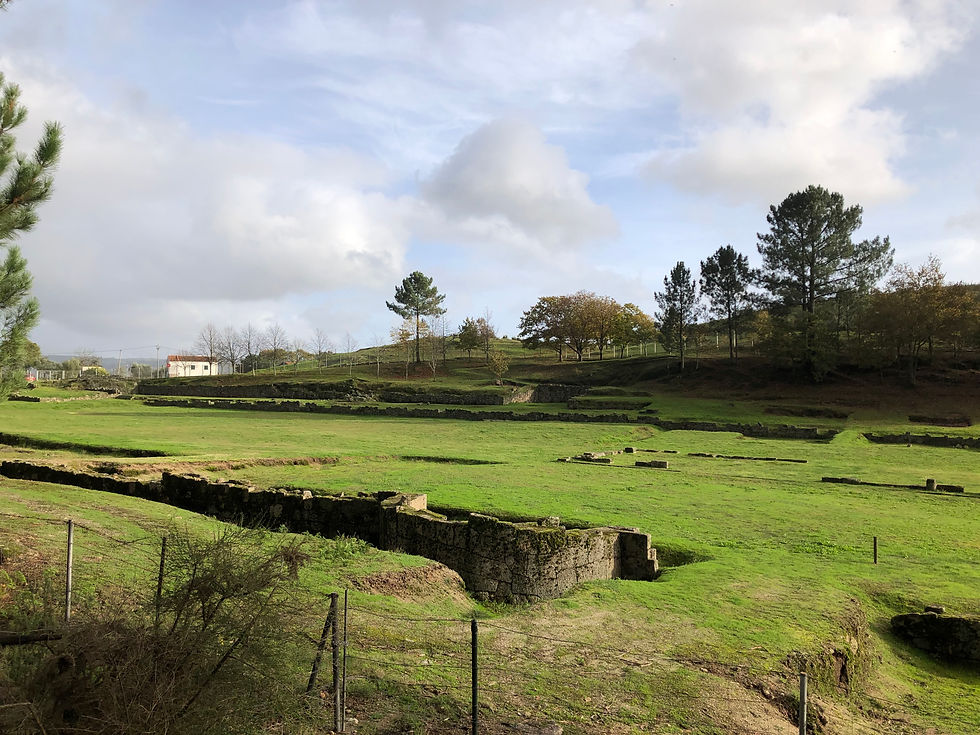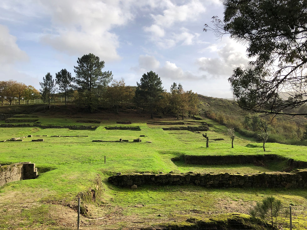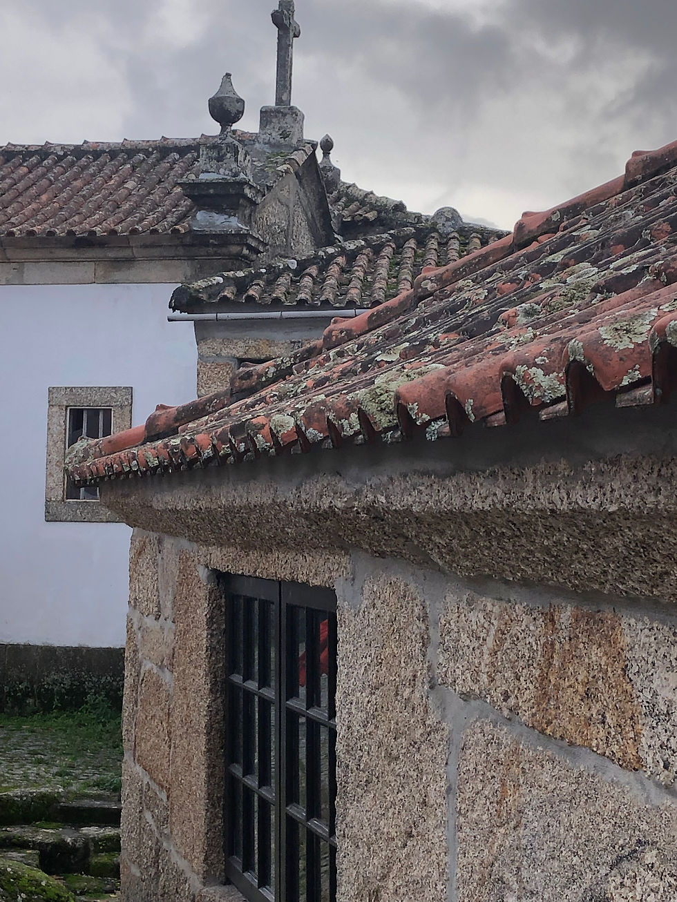 Just a ten-minute drive away, there’s a Roman site (Tongobriga) that the rainless day enticed us to. You’ve always got to innovate when you have a dog so going into the site to see the forum and baths was not an option, but instead we explored the little village, followed paths that led to and through the necropolis and the remains of Roman habitations, now filled with mossy puddles and providing Monty with the oldest paddling pools he’s yet enjoyed. A marked walking trail – the PR6 – skirts around the site’s perimeter, leading us to a derelict chapel and granite outcrops where fire-blackened eucalyptuses bravely seemed to be in the process of regenerating themselves. One sad specimen lay toppled, though, brought down by the recent rains. I always enjoy surveying ancient sites. I like to stand on a high piece of land and take it all in, more so than scrutinising detail. No doubt that’s because I can only really bring an appreciation of its aesthetics, having very little knowledge of the history beyond school books. And so as we stood at the far end of the fenced-in forum, and watched a wintry haze soften the mountains on the horizon, I offered a silent thank you for yet another ‘exception’ that our time here in Portugal never seems to fail to offer up.